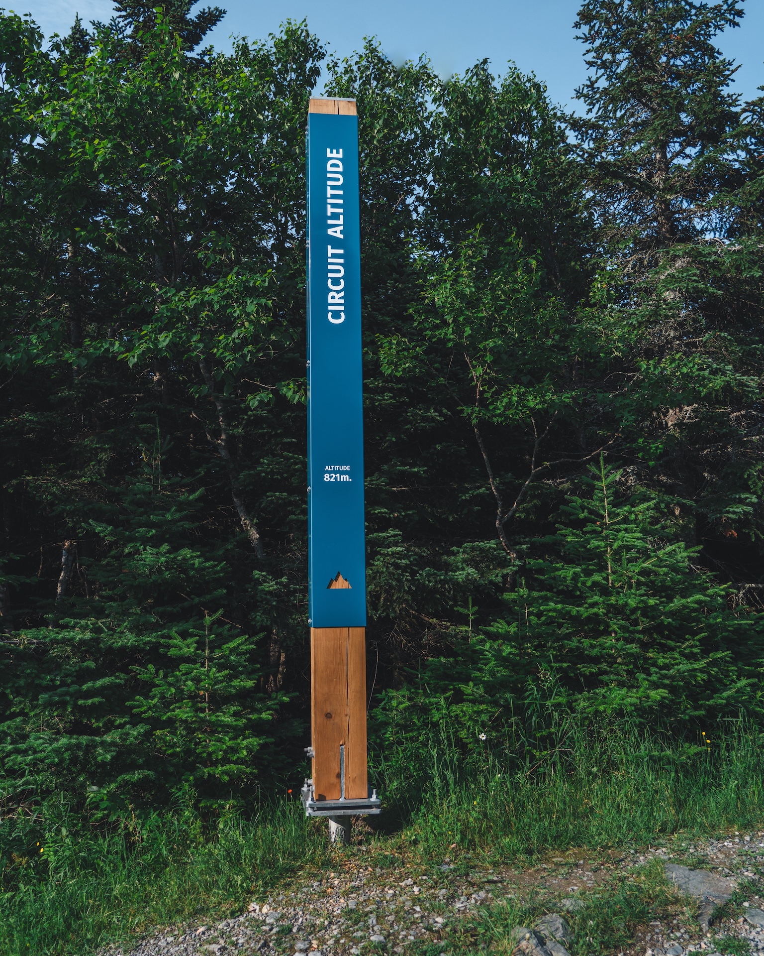 La signalisation a été créée sur-mesure pour assurer un guidage cohérent du Parcours Altitude pour tous les publics – amateurs et avancés, clientèle locale et voyageurs d’un jour. L’approche repose sur une famille signalétique - arches, jalons et poteaux - marquée de l'identité Mont-Orford déployée dans une gamme de matériaux identitaires. De plus, il s'adapte à la saisonnalité, se transformant pour recevoir les panneaux dédiés et skieurs. Ce concept garantit une forte présence corporative et une cohérence formelle durable et adaptable pour les besoins futurs.