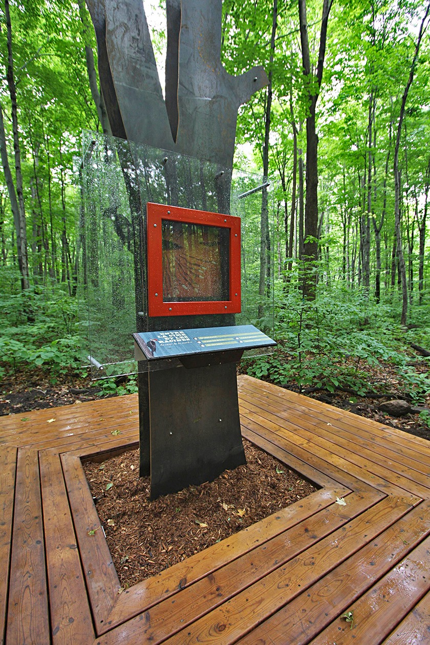 Le concept, intégré à l'aménagement paysager, est basé sur le contraste : des plateformes, mobiliers et dispositifs interactifs attirent l'attention sur de petits détails de la faune et de la flore, disposés pour créer une série de haltes thématiques sollicitant activement les sens. Ce parcours invite les visiteurs à faire une série de pauses, observer pour mieux comprendre la biodiversité qui les entoure. Le sentier d'interprétation renouvelle l'expérience nature de façon ludique.