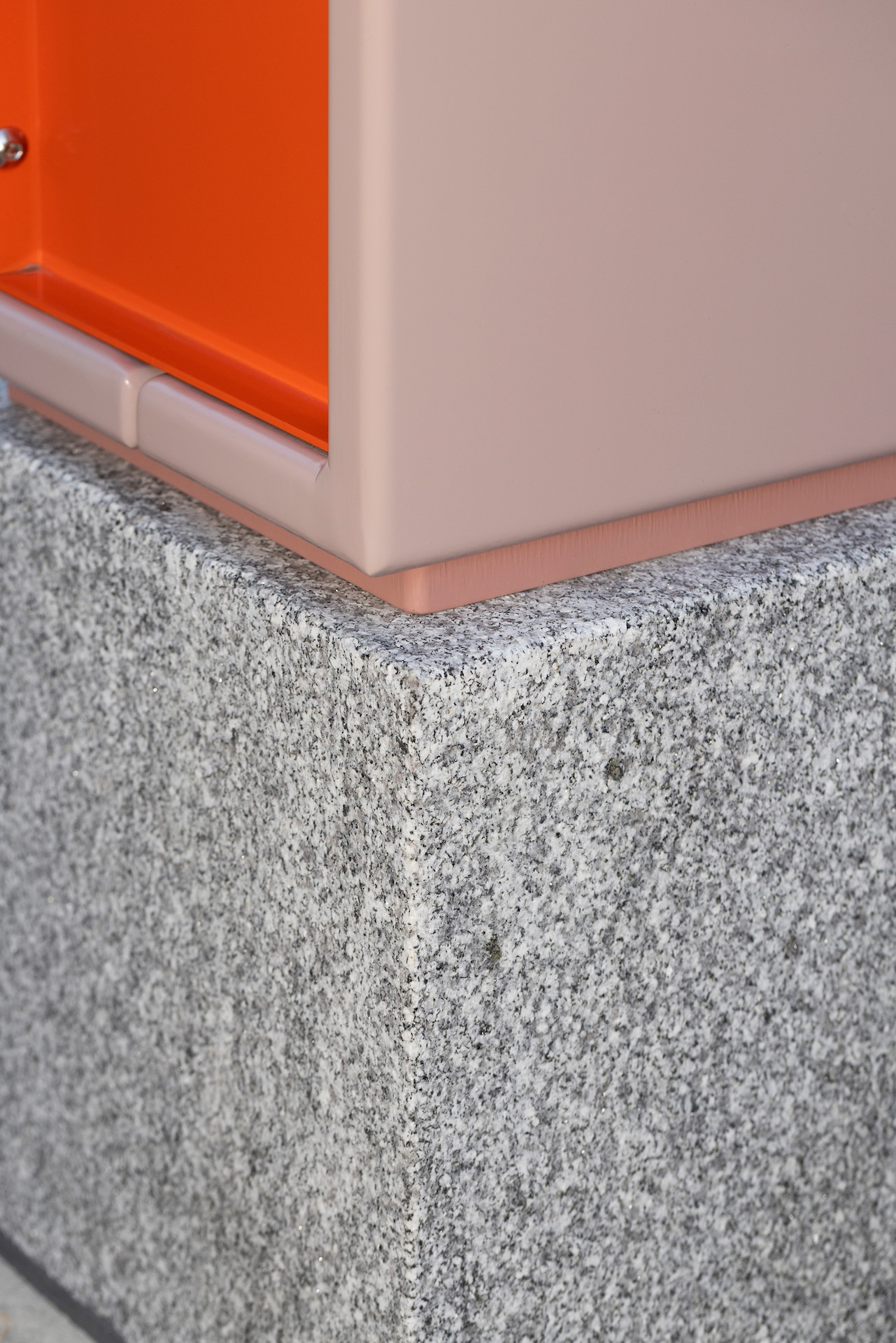 Les structures, fabriquées en aluminium peint et granit local, allient résistance et légèreté. Un système de plaques interchangeables facilite le renouvellement des œuvres sans interruption d’exposition. L’ensemble est pensé pour un entretien minimal, une durabilité maximale et une installation respectueuse sur le domaine public.